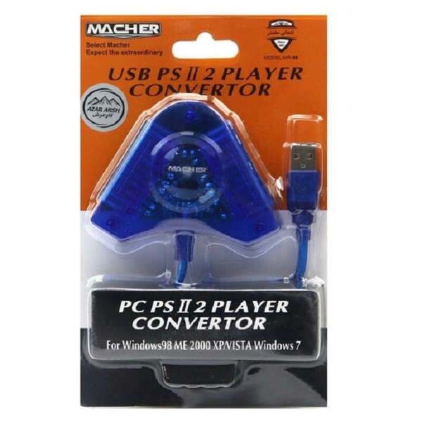 تبدیل دسته پلس استیشن 2 به کامپیوتر و لپ تاپ دارای دوپورت که به صورت همزمان فعال میباشند طول کابل حدود 40سانت