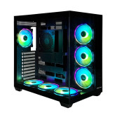 کیس کامپیوتر Master Tech TERABOX PLUS یک Mid Tower آکواریومی دوطرفه است که با ترکیب فلز و شیشه سکوریت، هم مقاومت فیزیکی بالایی دارد و هم نمایش داخلی چشمگیر برای اسمبلهای پیشرفته فراهم میکند. ابعاد این کیس ۴۴۸×۴۲۴×۲۸۵ میلیمتر و وزن آن ۸.۶ کیلوگرم است؛ بدنه مستحکم و ابعاد متعادل آن فضای کافی برای نصب سختافزارهای سنگین بدون فدا کردن پایداری سازه ایجاد میکند. سازگاری با مادربردهای ATX، microATX و Mini‑ITX، انعطاف بالایی در انتخاب پیکربندیهای مختلف به کاربر میدهد. محدودیت ارتفاع کولر پردازنده ۱۶۰ میلیمتر بوده که بیشتر مدلهای هوایی متوسط و برخی مدلهای بزرگ را پوشش میدهد. طول کارت گرافیک تا ۴۱۵ میلیمتر پشتیبانی میشود، بنابراین کارتهای سهفن و حتی نسخههای طولانیتر به راحتی قابل نصب هستند. طراحی محل پاور در دیواره کناری با فرم فاکتور ATX PS2، ضمن بهینهسازی فضای داخلی، مسیر کابلکشی را کوتاهتر کرده و تعادل توزیع وزن را بهبود میبخشد. وجود ۹ اسلات توسعه امکان نصب کارتهای جانبی متعدد را فراهم میکند. سیستم تهویه این مدل با ۱۰ جایگاه فن بسیار گسترده بوده و شامل سه فن در سقف، سه فن در کف، سه فن در پنل کناری و یک فن در پشت است. ۷ فن ۱۲۰ میلیمتری پیشنصبشده جریان هوای اولیه را تضمین میکنند، و قابلیت نصب رادیاتور واترکولینگ تا ۳۶۰ میلیمتر، آن را آماده خنکسازی قطعات پرمصرف میسازد. در بخش ذخیرهسازی، سه جایگاه ۲.۵ اینچی برای SSD و دو جایگاه ۳.۵ اینچی برای HDD در نظر گرفته شده است. پنل جلویی مجهز به یک پورت USB 3.2 Type‑C، دو پورت USB 3.0 و دو جک صوتی ۳.۵ میلیمتری است که ارتباط سریع با لوازم جانبی و تجهیزات مدرن را فراهم میکند. سیستم مدیریت کابل و فیلتر گردوغبار داخلی، نگهداری و اسمبل تمیز سیستم را تسهیل میکنند. این کیس با سازگاری کامل با مادربردهای BTF، گزینهای مناسب برای پیکربندیهای مدرن با تمرکز بر دوام شاسی و تهویه پرقدرت محسوب میشود.